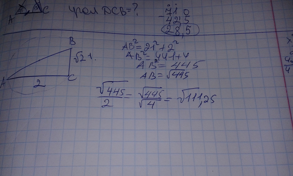 AB=√(√21)^2+2^2=√21+4=√25=5