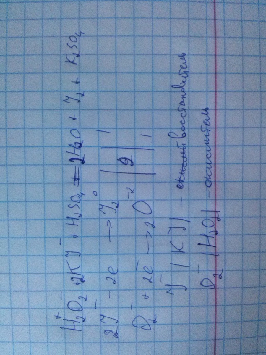 пардон,не так написала H2O2+KJ+H2SO4=H2O+J2+K2SO4 КТО ОКИСЛИТ.И ВОССТАНОВИТЕЛЬ. ПОДОБРАТЬ КОЭФФИЦИЕНТЫ
