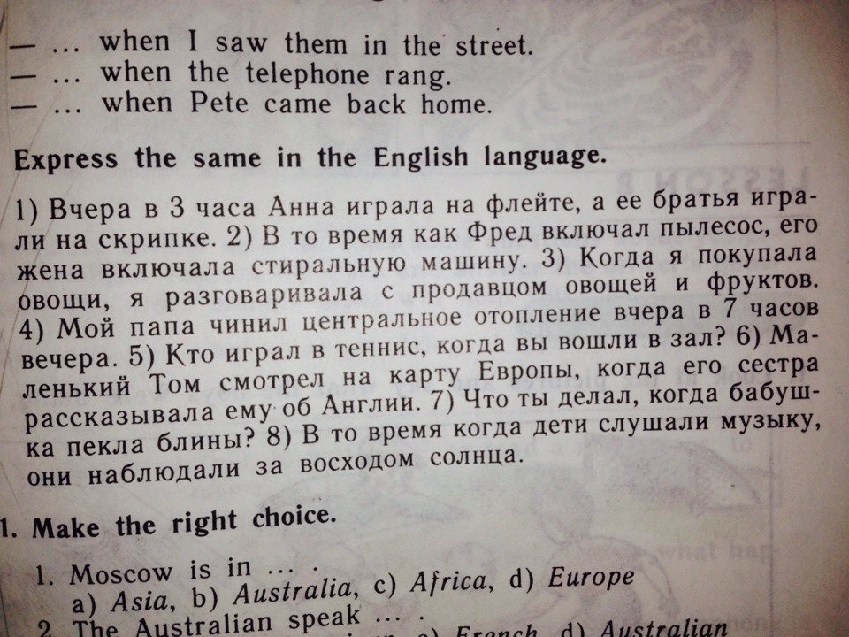 My dad was repairing the central heating (system) at seven o'clock yesterday.