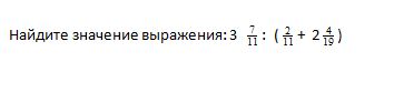 (3 7/11) / ( 2+ (2/11 + 4/19)) = (3 7/11) / ( 2+ ( 19*2/209 + 44/209))=