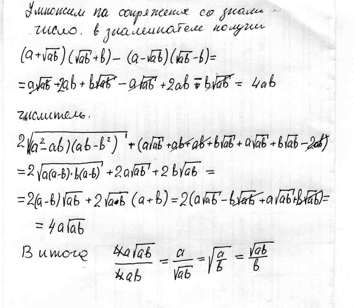 Смотрите фото!!! Пожалуйста, решите в ответах учебника корень из ab делённое на b!!! у меня никак не получается.....