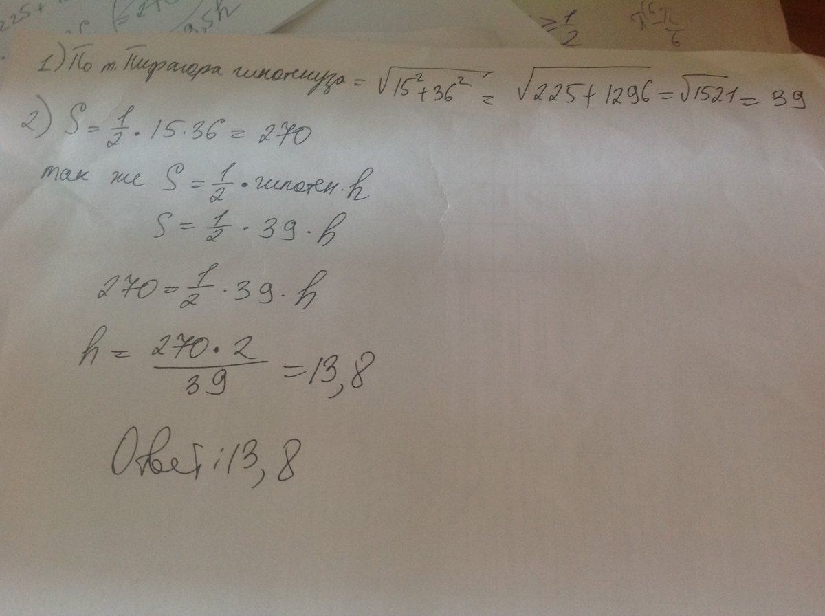 K=sqrt15*15+36*36