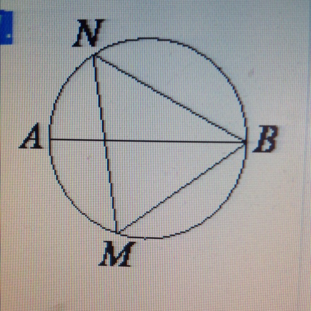 На окружности по разные стороны от диаметра AB взяты точки M и N. Известно, что угол NBA = 38 градусов. Найдите угол NMB.