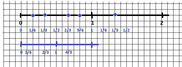 Самая маленькая часть - это 1/6. Поэтому удобно выбрать за единичный отрезок число кратное 6 - это или 6 или 12 клеток.