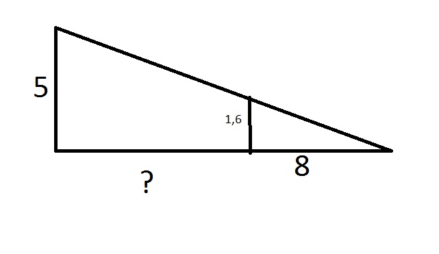 соотношение 5 делим на икс = 8 делим на 1,6. получается Х = 5*1,6/8, ответ : 1