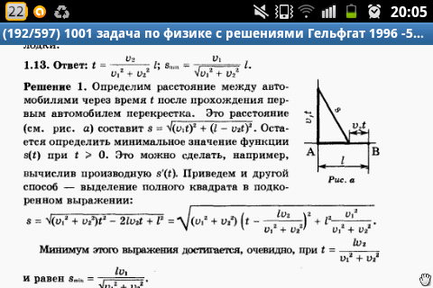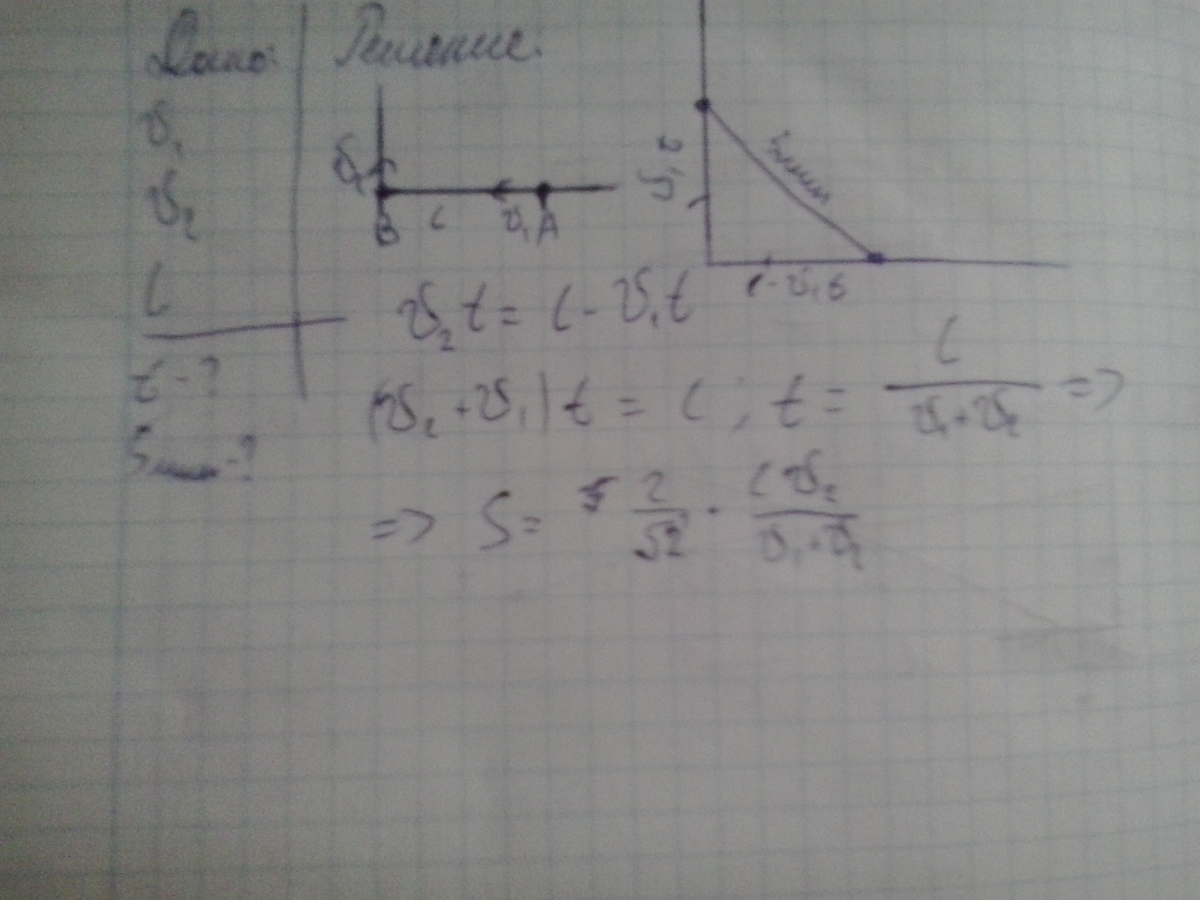 я предположил что гипотенуза будет минимальна при равнобедренном прямоугольном треугольнике, и я приравнял 2 пути. выразил время. нашёл путь(1)=путь(2) и через теорему синусов вычислил гипотенузу. (Где я ошибся??? или я прав? причём нахождение производной в примере решения в сборнике???) заранее спасибо...