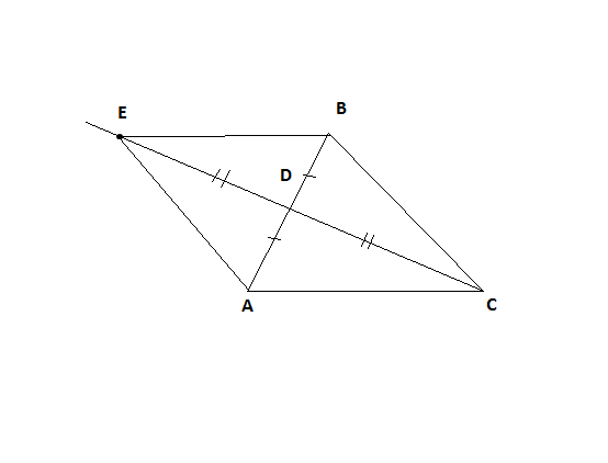 Дан треугольник ABC. На продолжении его медианы CD отложен отрезок DE=CD. Докажите равенство треугольников BAE и ABC.