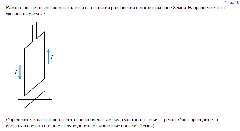 во второй задаче линии магнитного поля, создающие в рамке ток направлены по стрелке по правилу буравчика. Так как линии магнитной индукции идут с северного географического полюса к южному, то стрелкой указан Юг