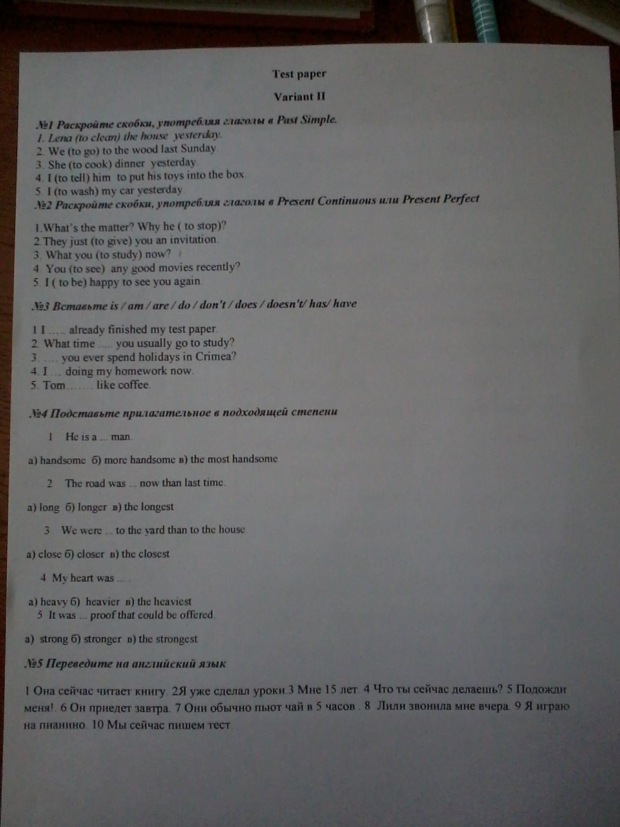 5) I washed my car yesterday.