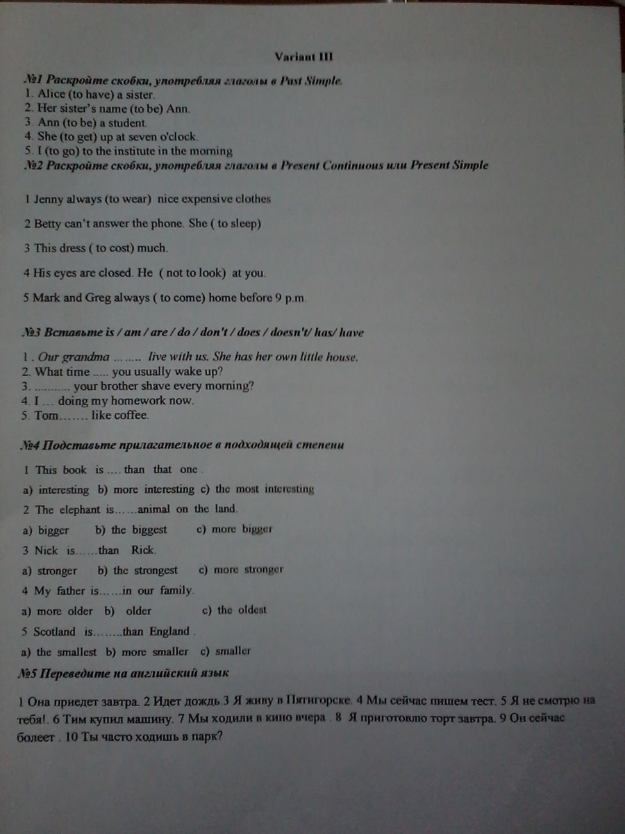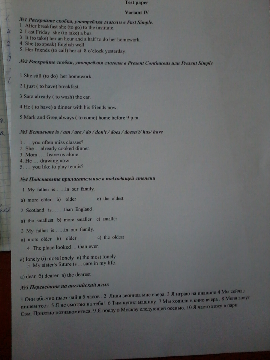 1)After breakfast she went to the institute.