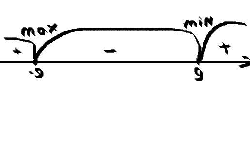 производная(-x/(x2+81))=-(x2+81-2x2)/(x2+81)2=(x2-81)/(x2+81)2