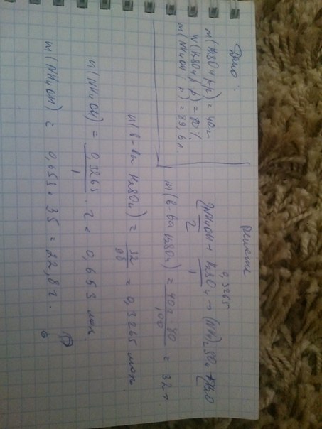 масса сульфата амония (NH4SO2) который образуется при взаимодействии 89,6л при норм условиях амония с 40г 80% раствора серной килоты необходимо найти
