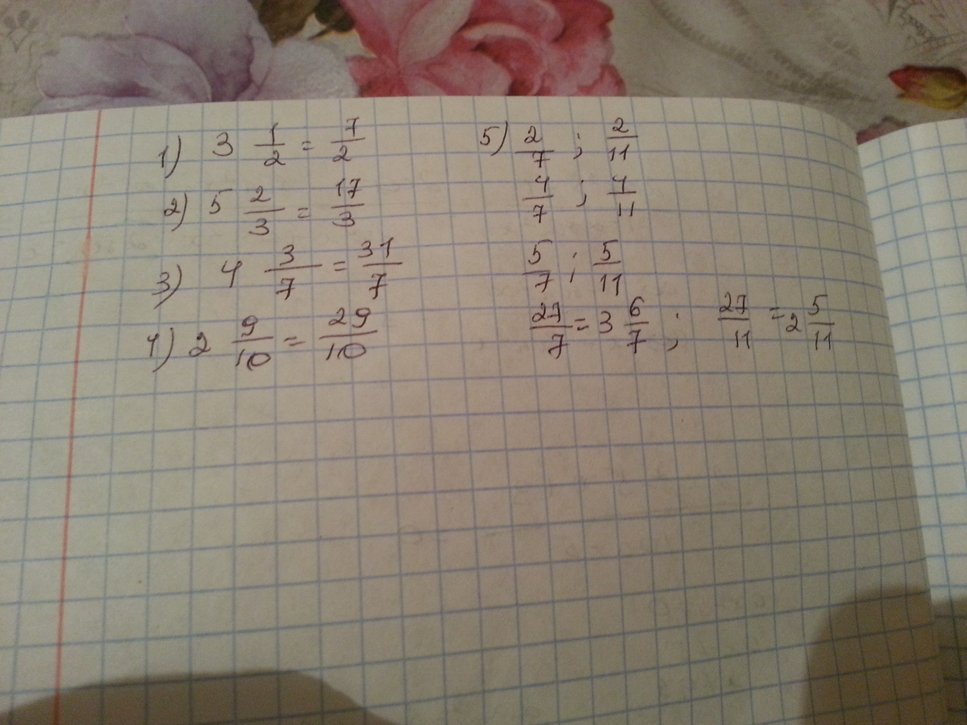 а) 3 целых одна вторая; 5 целых две третьих; 4 целых три седьмых; 2 целых девять десятых.