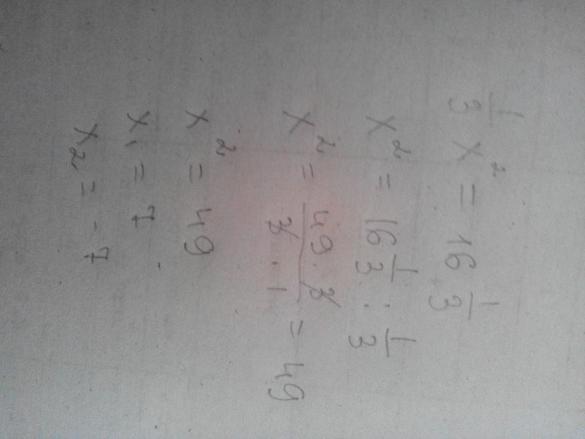 1/3x²=16⅓ x²=16⅓ / ⅓ →x²=49→x=±7