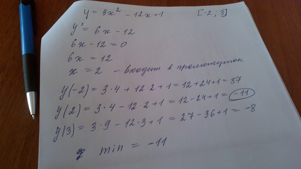 y(2) = 3*2² - 12*2 + 1 = 12 - 24 + 1 = -11