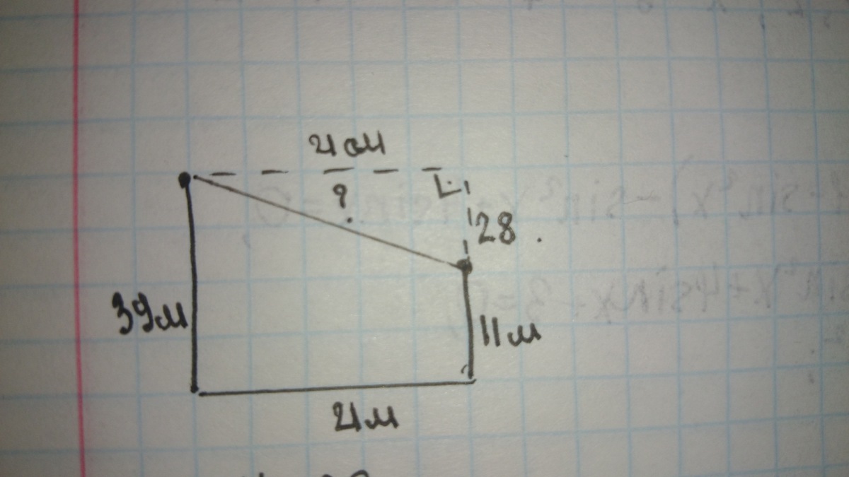 Ответ я знаю :корень из (21^2+(39-11)^2)=корень из (441+784)=35