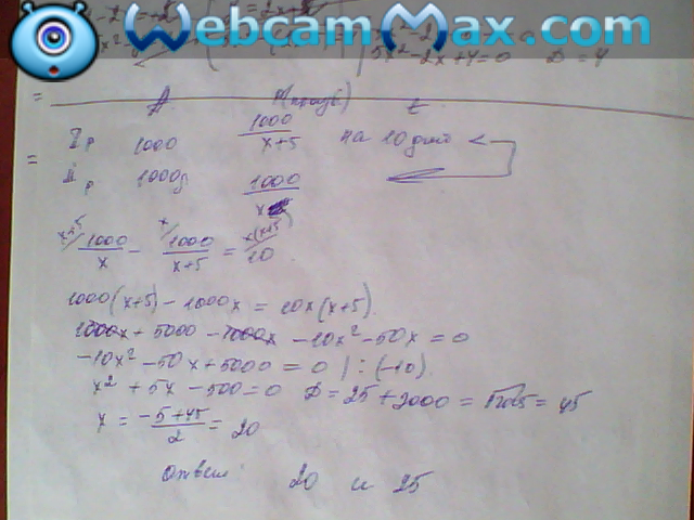 Двое рабочих должны были изготовить по 1000 деталей .Один из них изготавливал каждый день на 5 деталей больше , чем второй ,и выполнил заказ на 10 дней раньше второго .Сколько деталей изготавливал ежедневно каждый рабочий