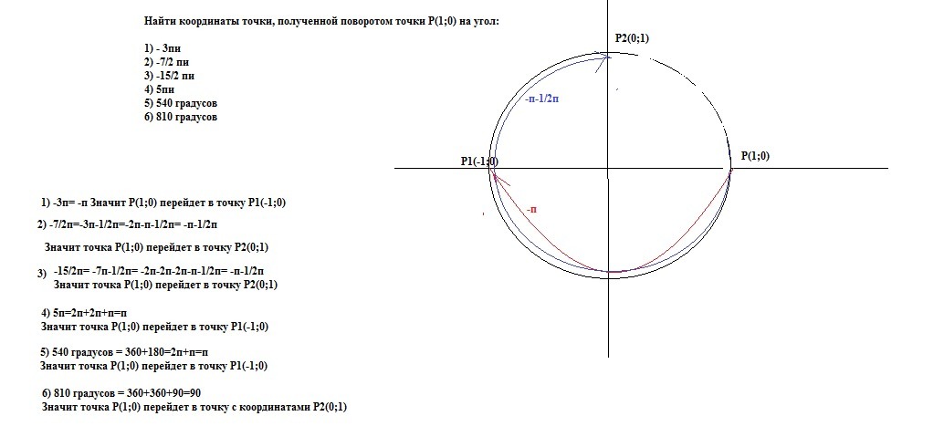 Найти координаты точки, полученной поворотом точки P(1;0) на угол: