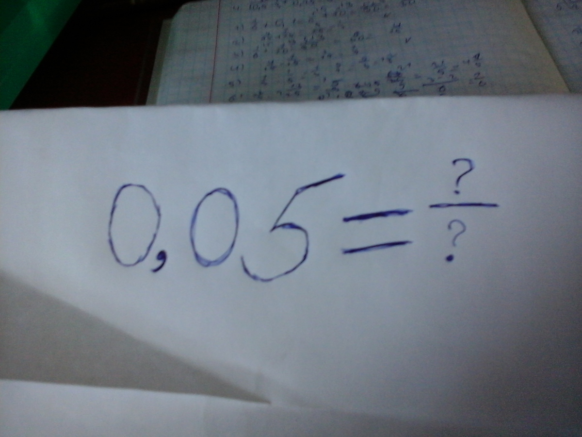 0,05=5/100=1/20, где знак / - дробная черта.