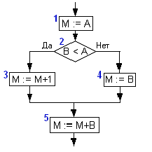 1рисПеред выполнением данного фрагмента были введены значения A=12 и B=34. Значение переменной М после выполнения фрагмента алгоритма равно ...