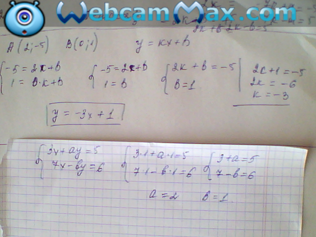 5)Найдите значения a и b,при которых решением системы уравнений является пара Х=1,у=1 3х+ау=5 7х-by=6. Это два вопроса кароч