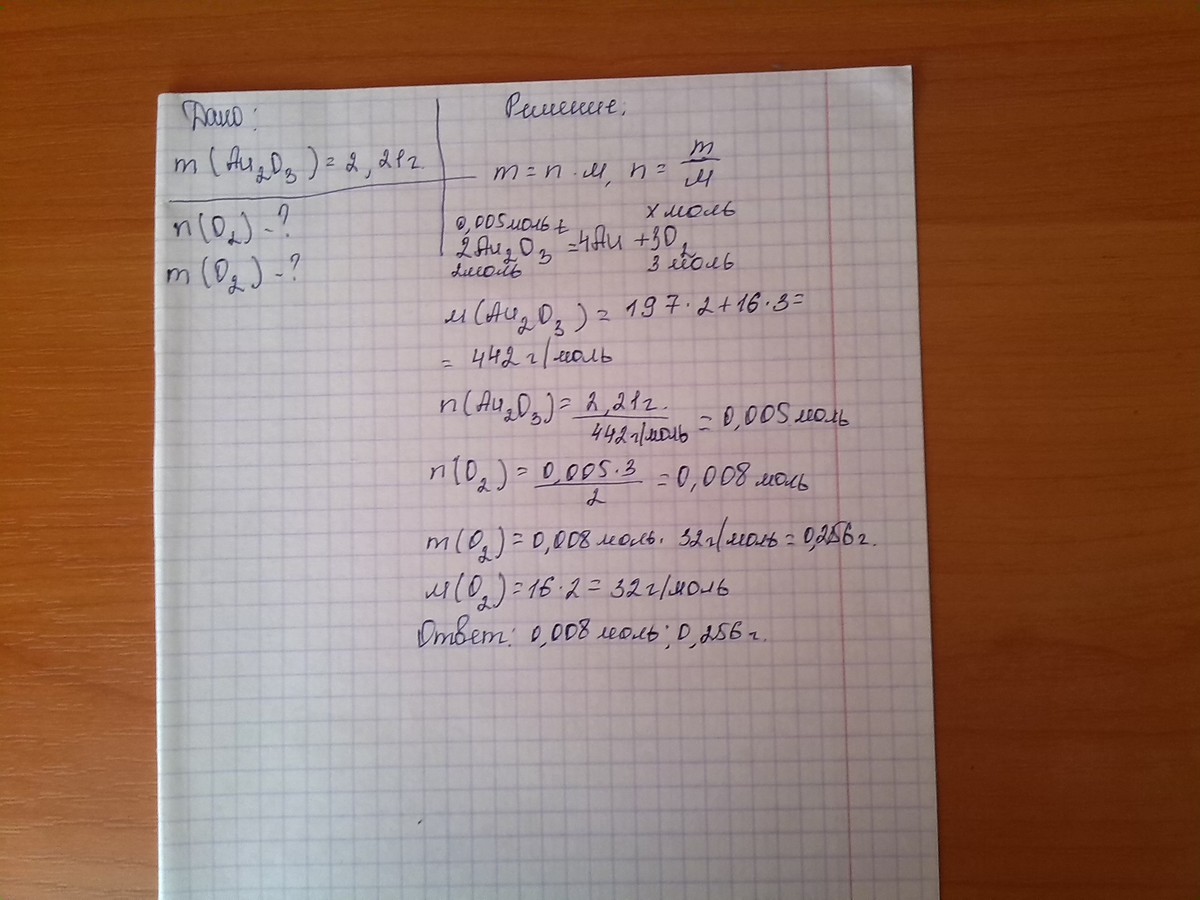 сколько молей и грамов кислорода выделится при разложении 2.21 г оксида золота Au2O3? где ошибка найти немогу