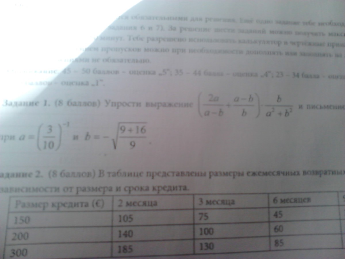 (2a/a-b+a-b/b)*b/(a2+b2)=(2аb+(A-b)^2)/b(a-b)*b/(a2+b2)=(a2+b2)/b(a-b)*b/(a2+b2)=1/(a-b). Подставим значение 1/(10/3+5/3)=1/5. Это если а =3/10^(-1). - плохо на фото степень видно., b=-5/3