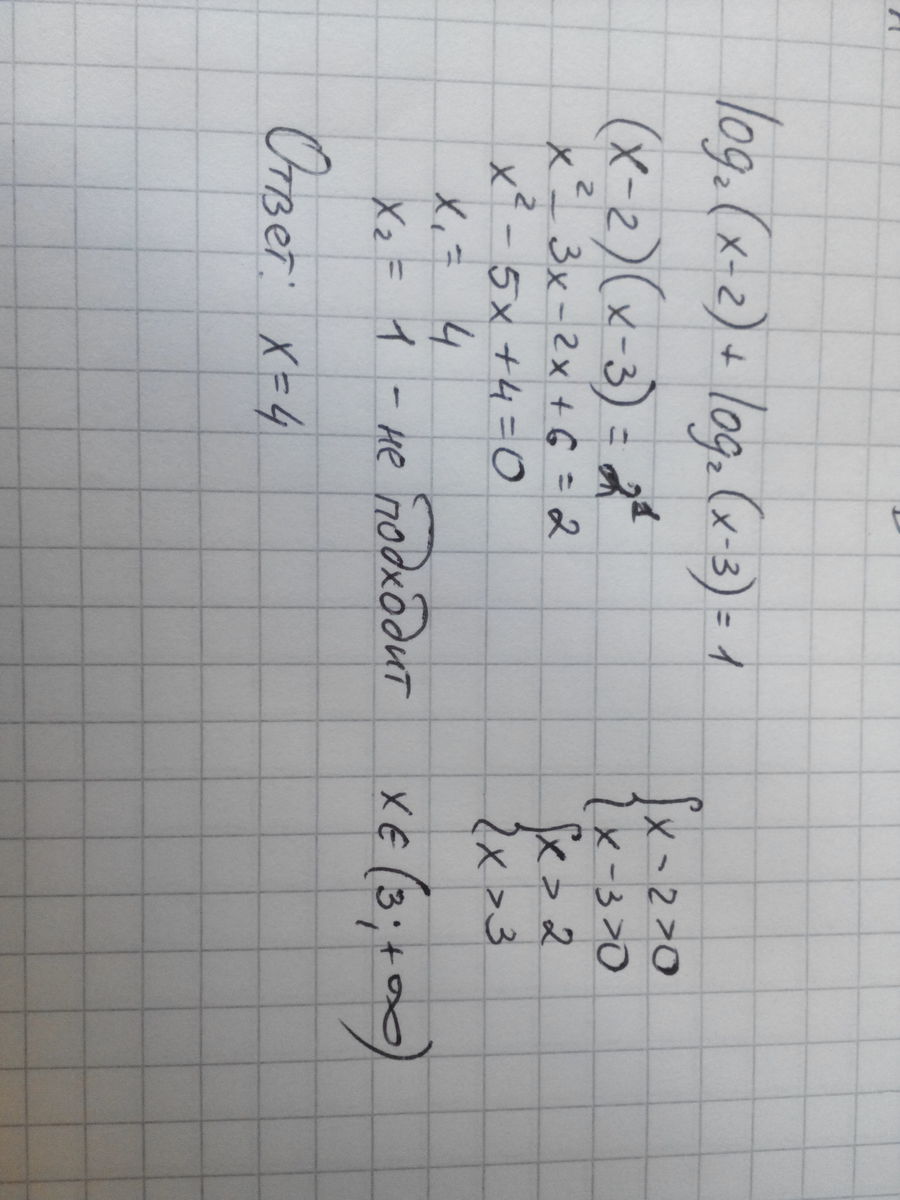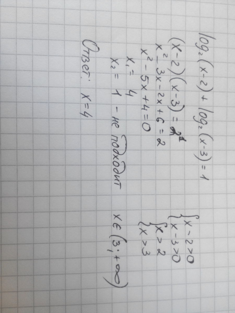 логарифм_2_(х-2)+логарифм_2_(х-3)=1