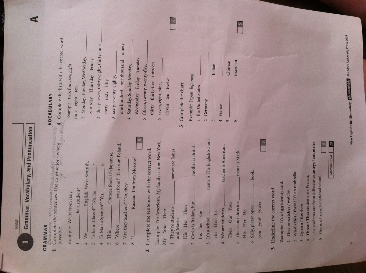 Grammar, vocabulary and pronuncition
