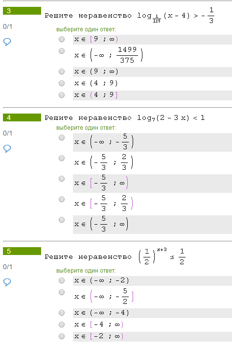 5) (1/2)^(x+3) ≤ (1/2)^1