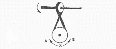 Если верхнее колесо вращается в направлении, указанном стрелкой, то в каком направлении вращается нижнее колесо?