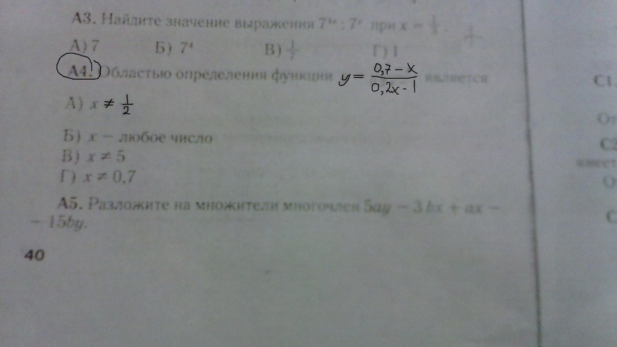 Знаменатель дроби не может быть равен нулю. 0.2х-1≠0