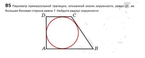 r=ad/2 =0,5*(периметр/2 - вс )=11-7/2=2