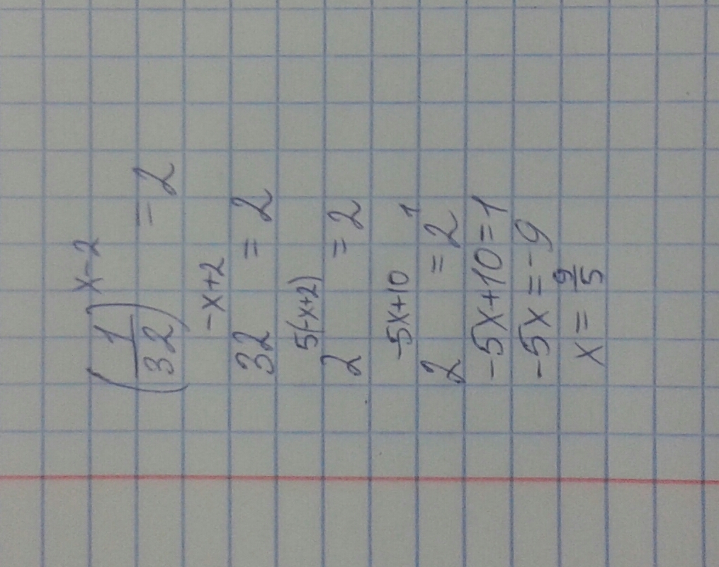 (1/2^(-5))^(x-2)=1/2^(-1)