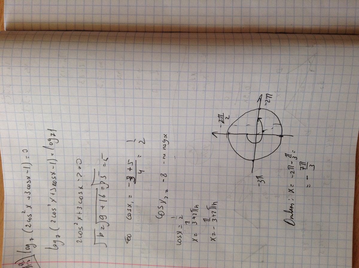 log (2cos^2x+3cosx-1) по осн. 7 = 0