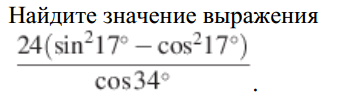 (24(sin^2 17 -cos^2 17))cos 34=(-24(cos^2 17 -sin^2 17))cos 34=(-24 cos 34)cos 34=-24