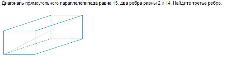 Квадрат диагонали прямоугольного параллелепипеда равен сумме квадратов диаогналей трёх измерений: длины, ширины и высоты.