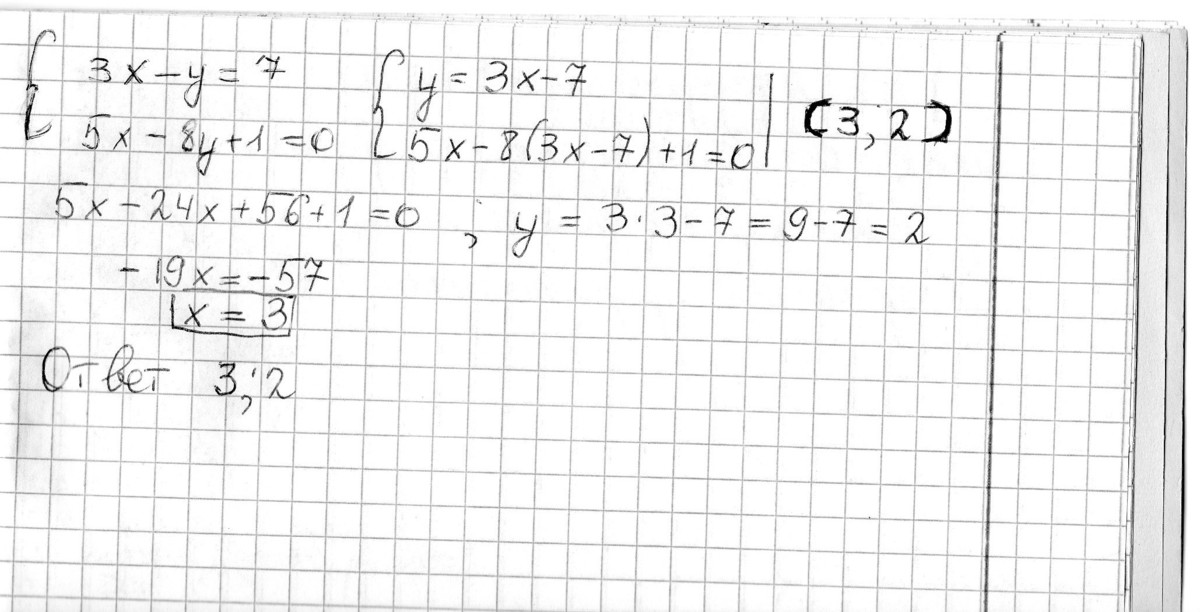 Какая из 4 пар чисел (x;y) является решением системы уравнений 3x-y=7