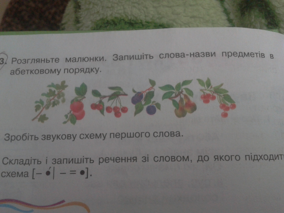 Агрус, вишня, груша,слива, черешня, яблуко.