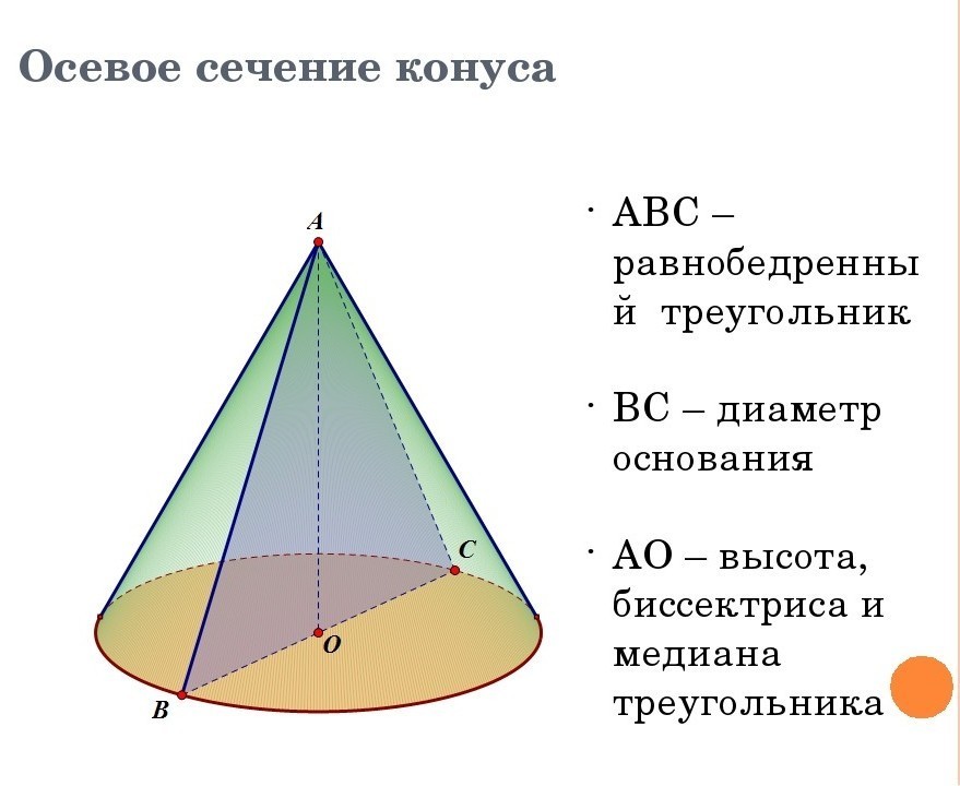 • В осевом сечении конуса находится треугольник АВС: