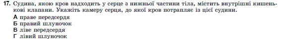 17. Судина, якою кров надходить у серце з нижньої частини тіла, містить внутрішні кишень-кові клапани. Укажіть камеру серця, до якої кров потрапляє із цієї судини.