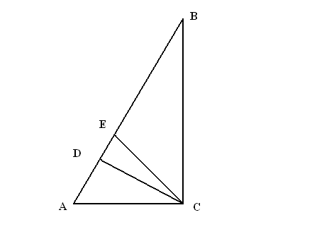 ABC - прямоугольный треугольник. CD - высота, CE - биссектриса (см. рис.).