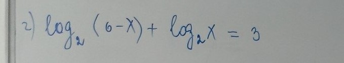 log_2(6-x)+log_2x=3\O.D.3.:\begin{cases}6-x>0\x>0end{cases}Rightarrowbegin{cases}x<6\x>0end{cases}Rightarrow xin(0;;6)\log_2(x(6-x))=log_28\6x-x^2=8\x^2-6x+8=0\D=36-4cdot8=4\x_1=2,;x_2=4