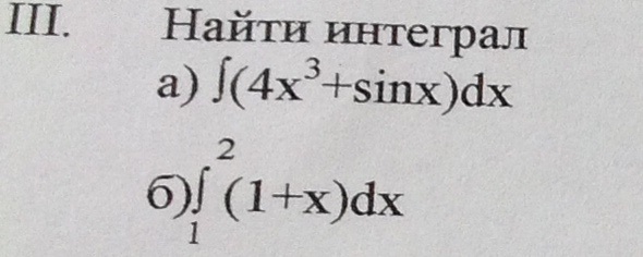 b)=x (в пределах от 1 до 2)+x**2/2 (в пределах от 1 до 2)=(2-1)+0,5(4-1)=1+1.5=2.5