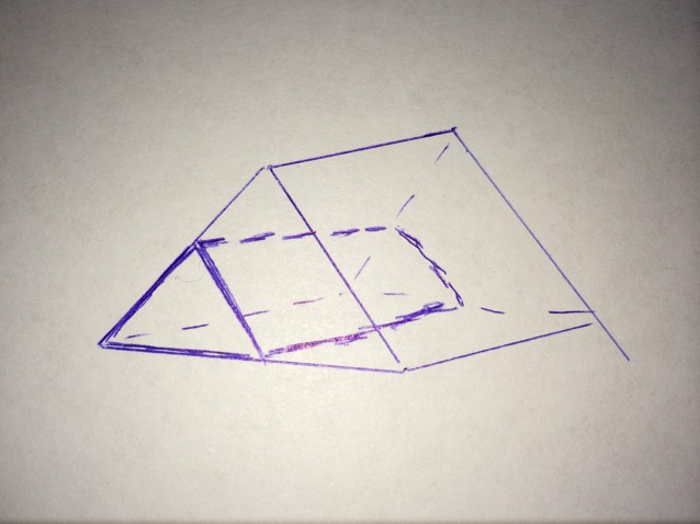 Нужно сказать, что если в треугольнике провести среднюю линию, то площадь отсеченного треугольника будет в 4 раза меньше площади исходного (основание в 2 раза меньше, т.к. средняя линия, и высота в 2 раза меньше по теореме Фалеса). Следовательно, площадь отсеченного основания в 4 раза меньше площади исходного основания, а значит и объем отсеченной призмы в 4 раза меньше объема исходной призмы.