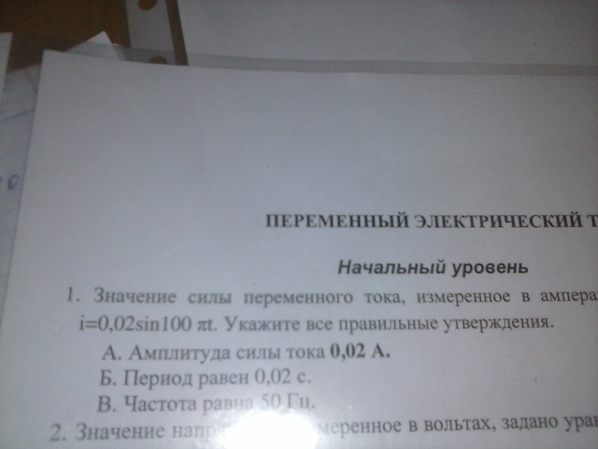 значение силы переменного тока измеренное в амперах задано уравнением i =0.02 sin100пt .укажите все правильные утверждегия