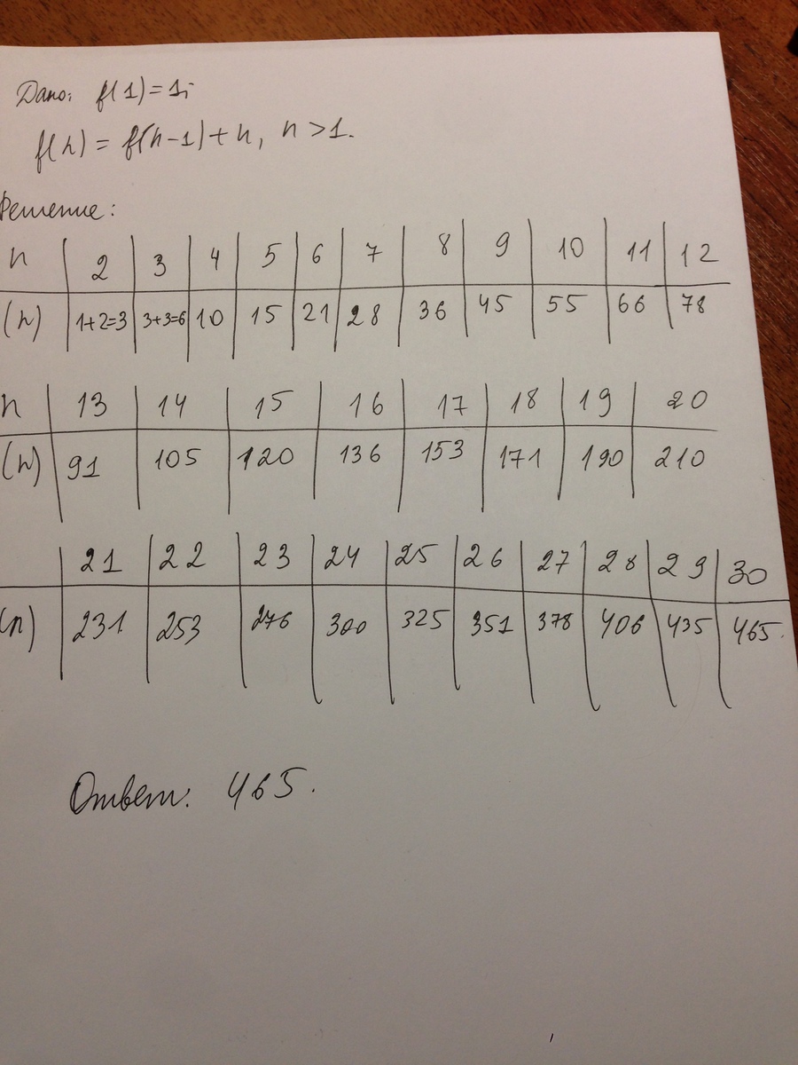 f(n)=f(n-1)+n, если n>1.