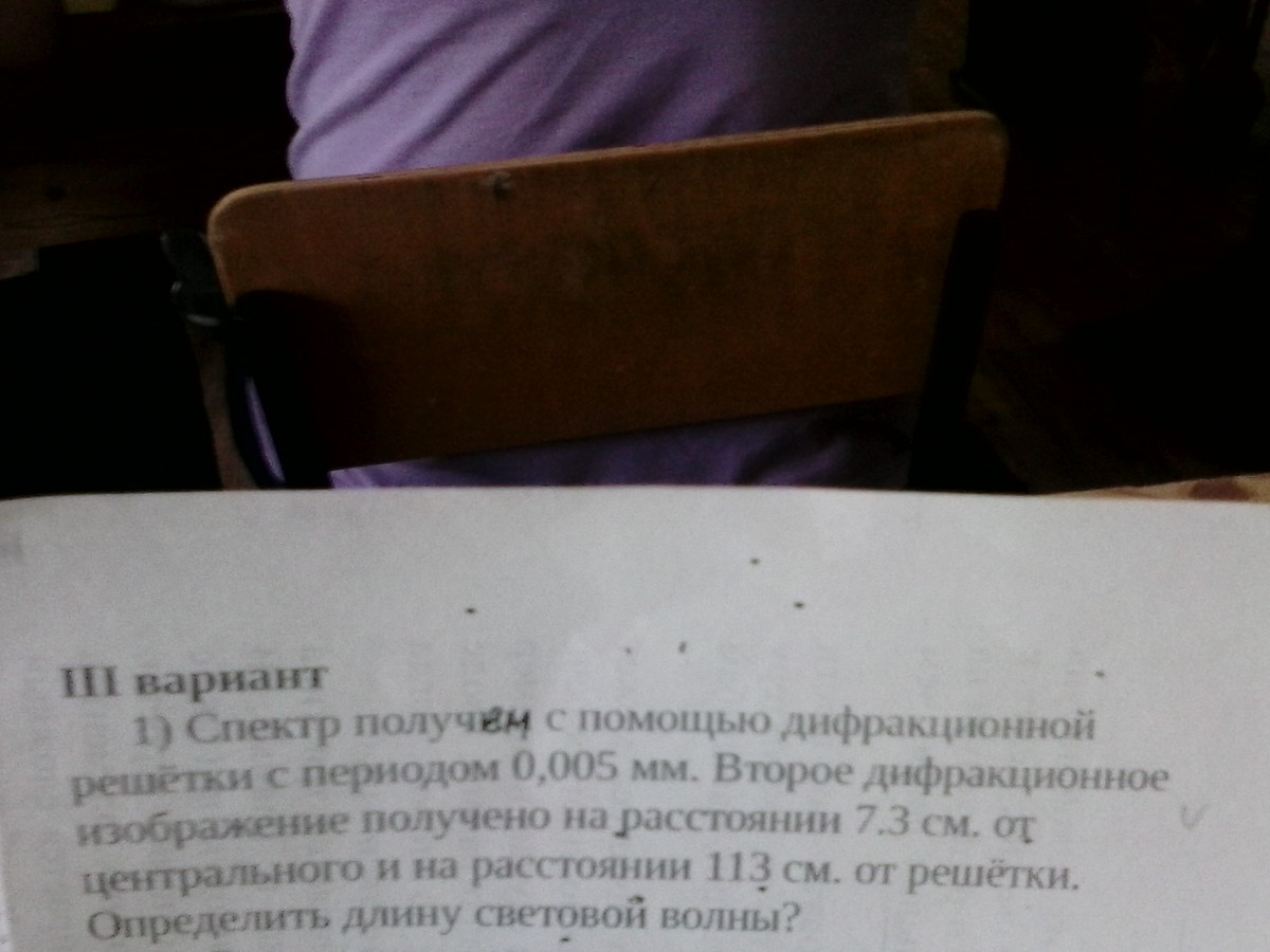 z=dsin a / 2 = 5*10**-6 * sin 3.7 /2 = 1.6*10**-7 м