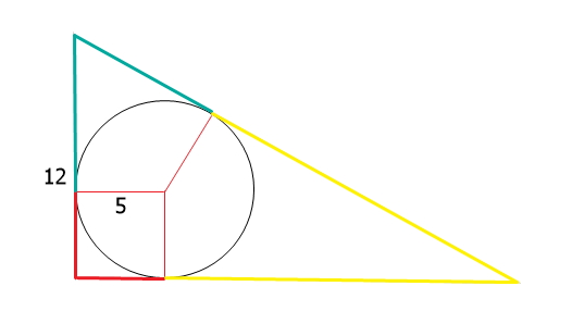 Радиус окружности, вписанной в прямоугольный треугольник, равен 5 см, а длина одного из катетов 12 см. Вычислите периметр треугольника