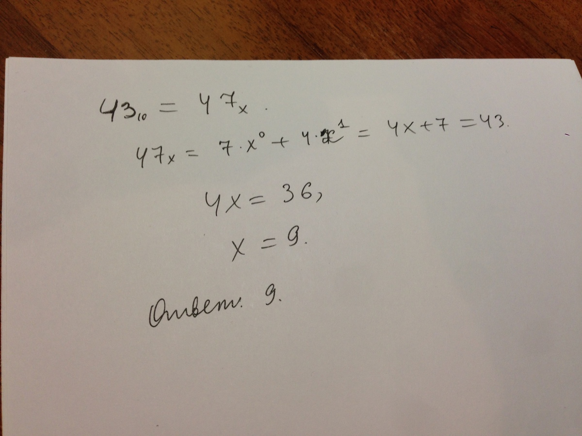 Если в некоторой системе счисления десятичное число 43 представлено в виде 47, то основание этой системы равно...